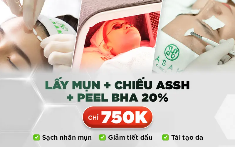 Combo Peel da trị mụn + Lấy nhân mụn chuyên sâu là liệu trình chăm sóc da chuyên biệt giúp điều trị mụn hiệu quả, làm sạch sâu lỗ chân lông và hỗ trợ phục hồi làn da khỏe mạnh. Dịch vụ kết hợp giữa peel da chuẩn y khoa và kỹ thuật lấy nhân mụn chuyên sâu, mang lại hiệu quả rõ rệt chỉ sau 1 liệu trình.